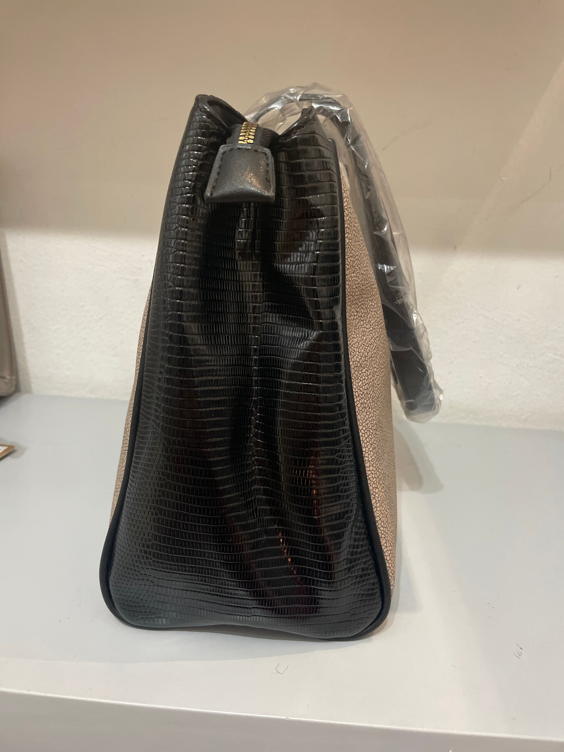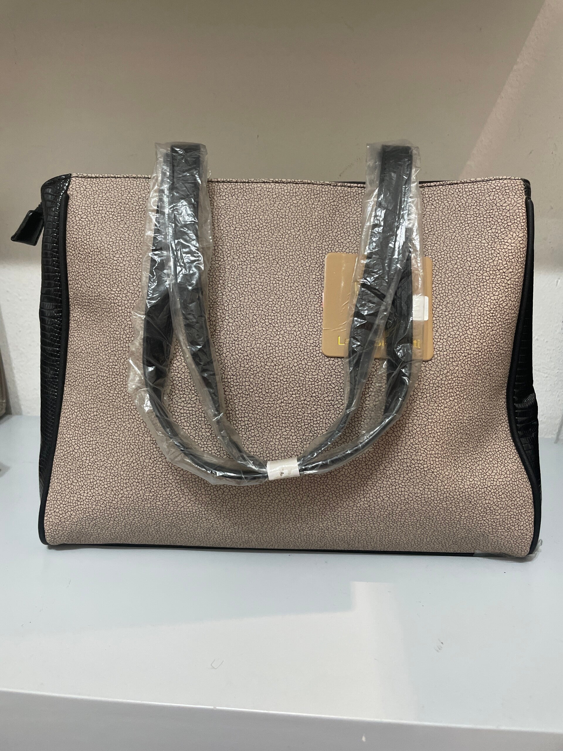 Borsa Laura Biagiotti nera e beige logo dorato. In pelle sintetica.