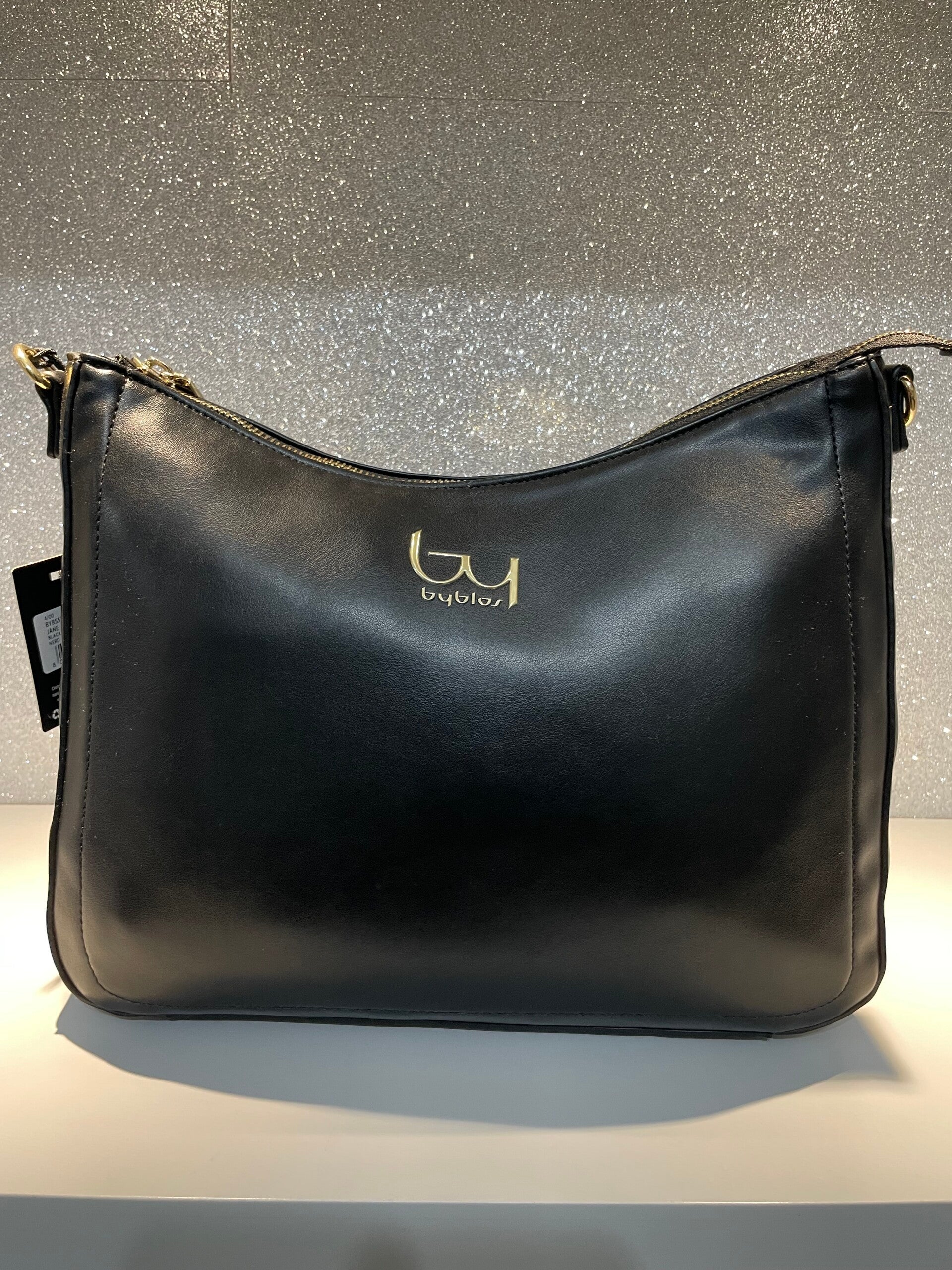 - Logo Byblos dorato sul davanti.- Chiusura superiore con zip.- Tracolla a catena dorata.