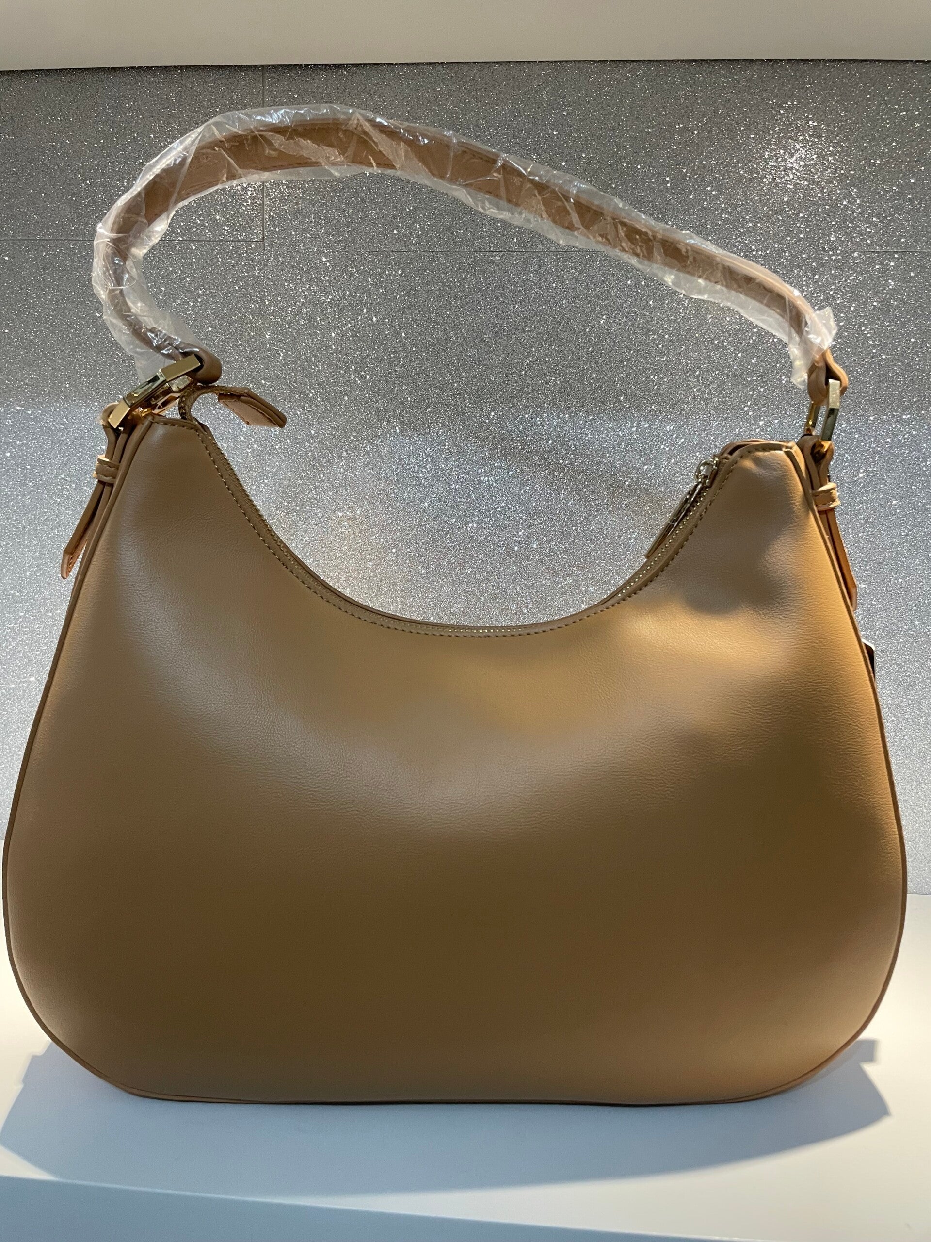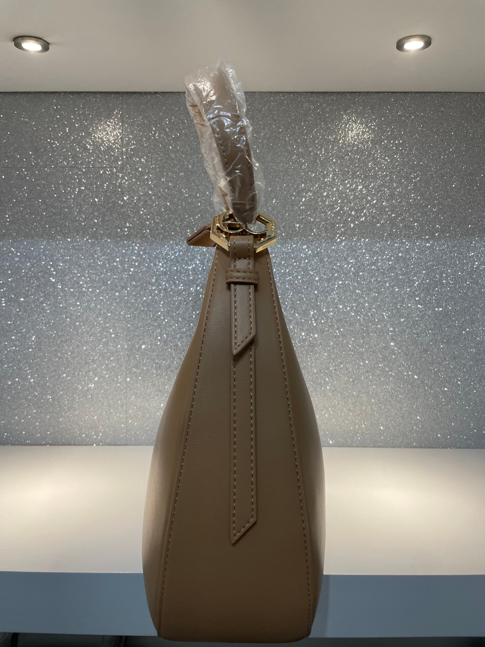 - Design a mezzaluna.- Manico curvo.- Logo inciso sul davanti.