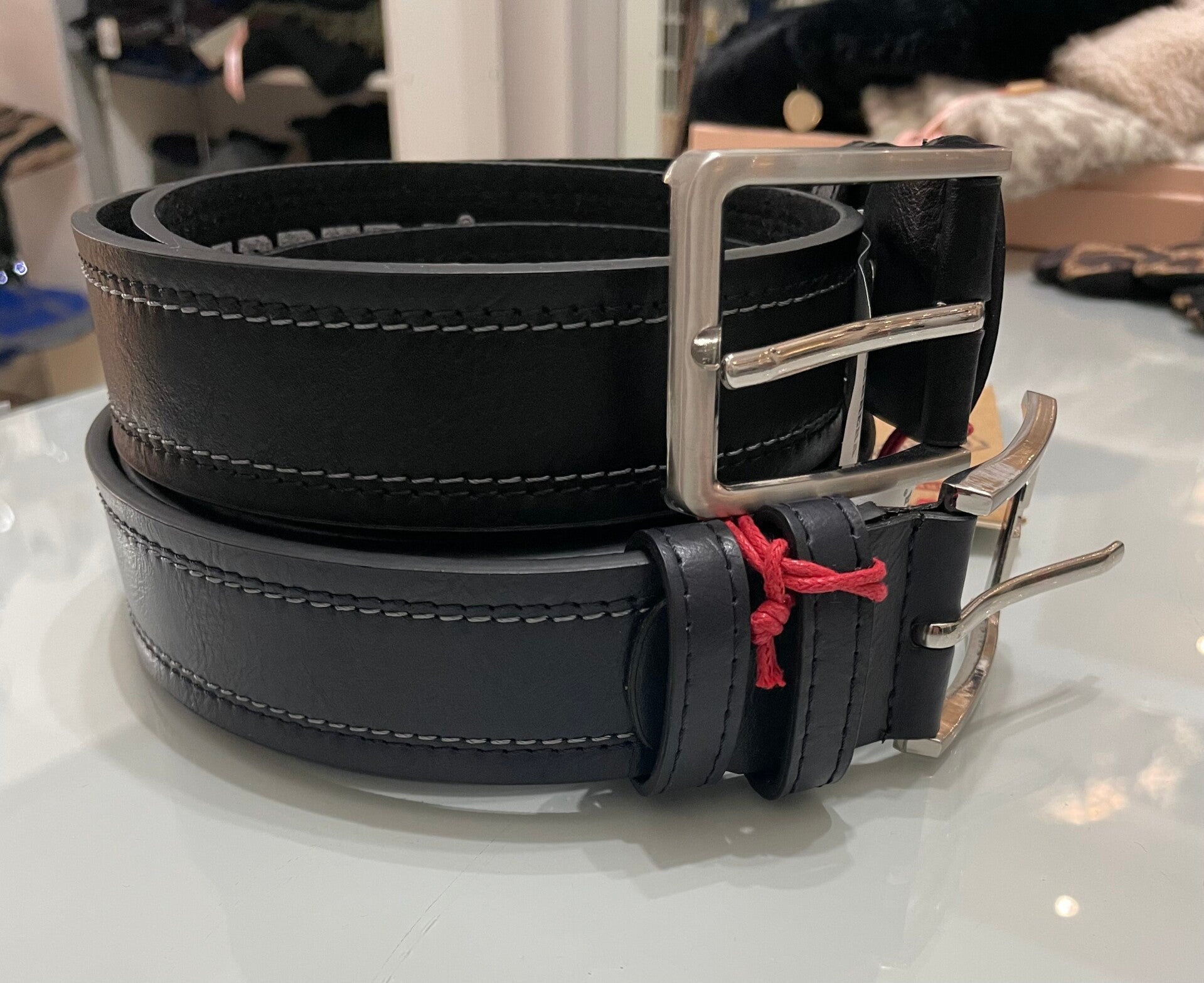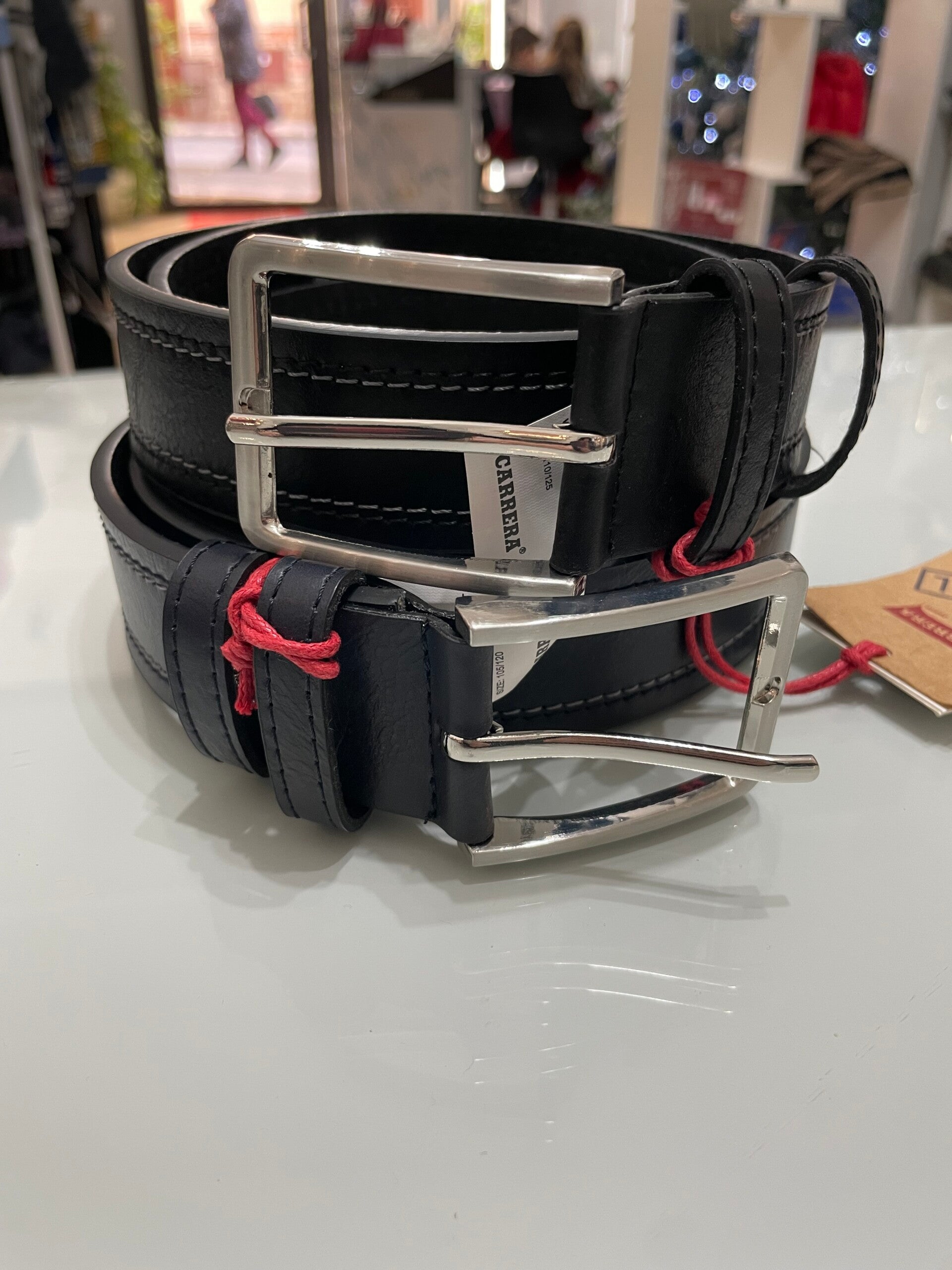 Cintura carrera, sintetico rigenerato di pelle, fodera pelle, fibbia nickel free